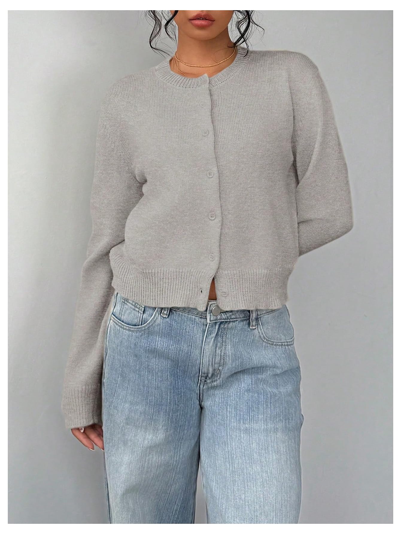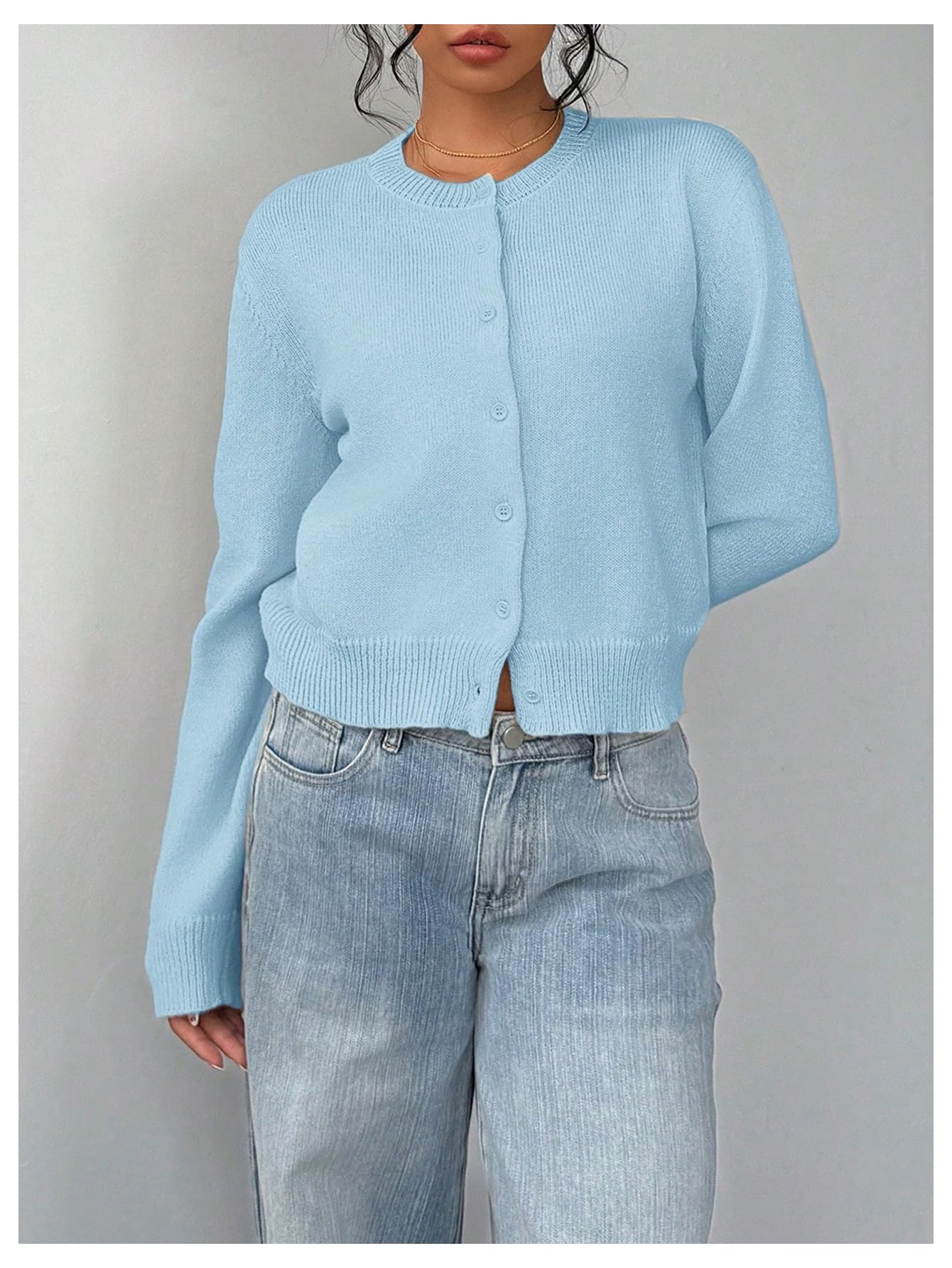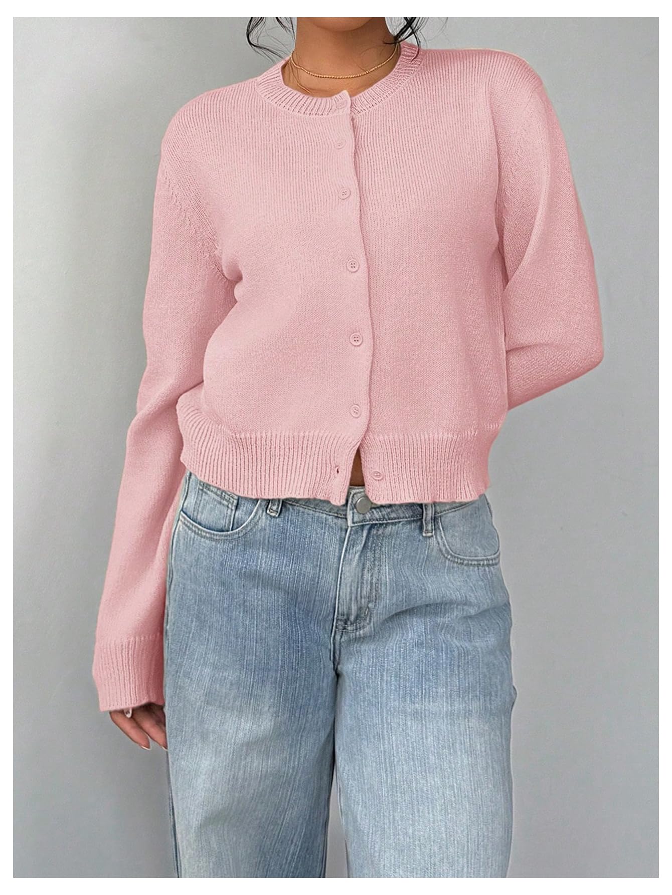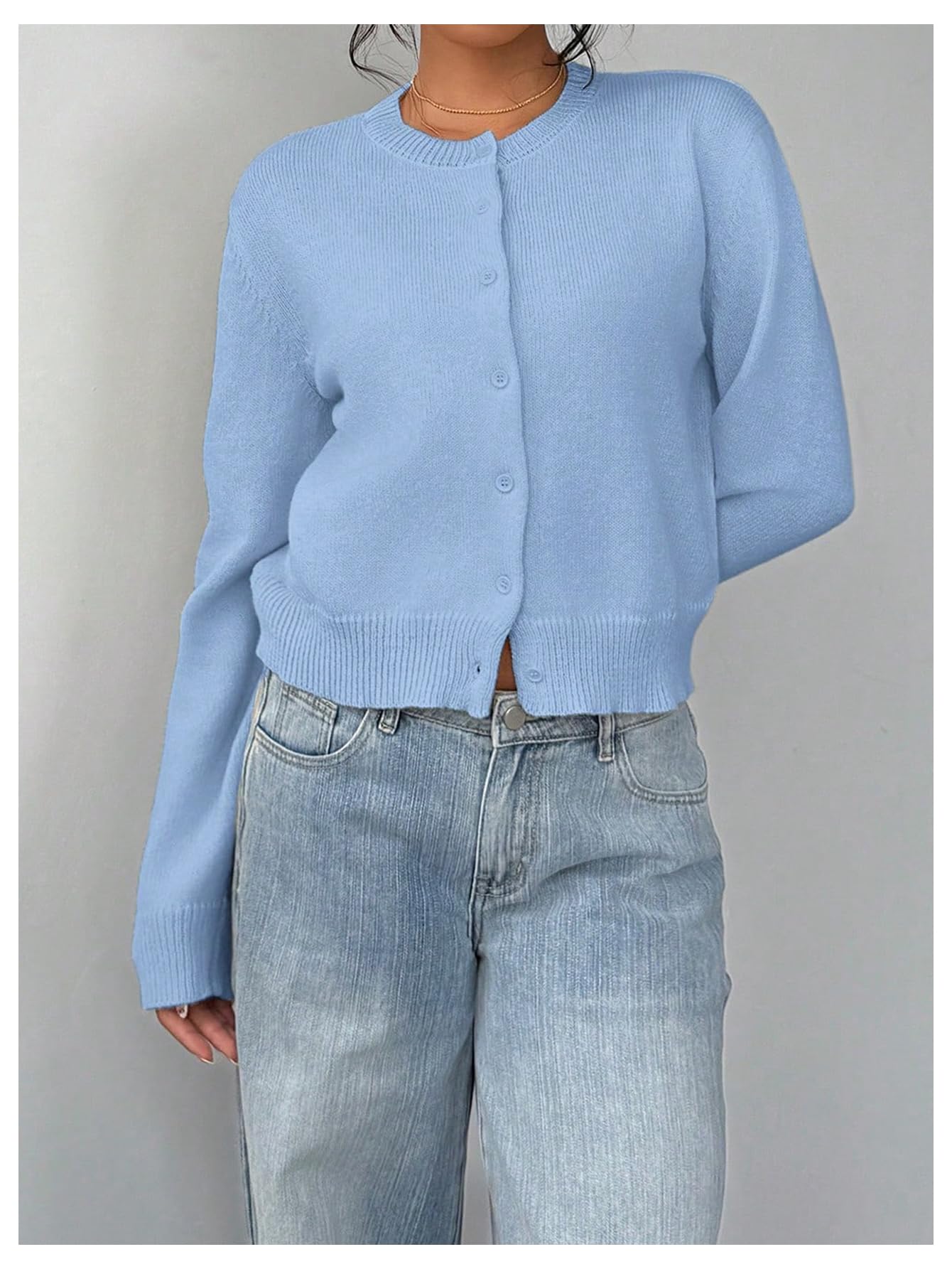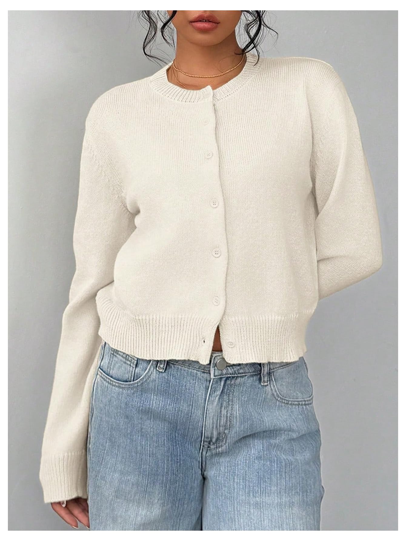 Design: Button front, round neck, drop shoulder, long sleeves, elegant and casual look