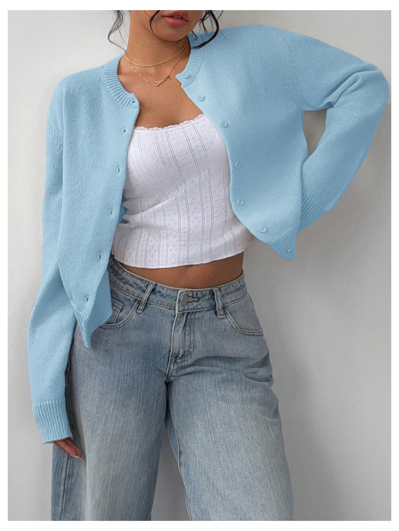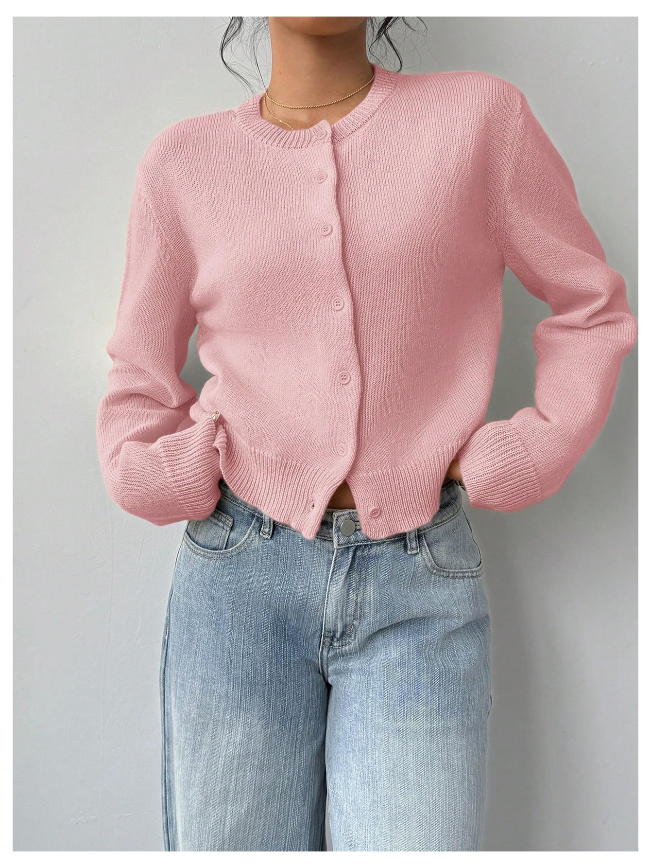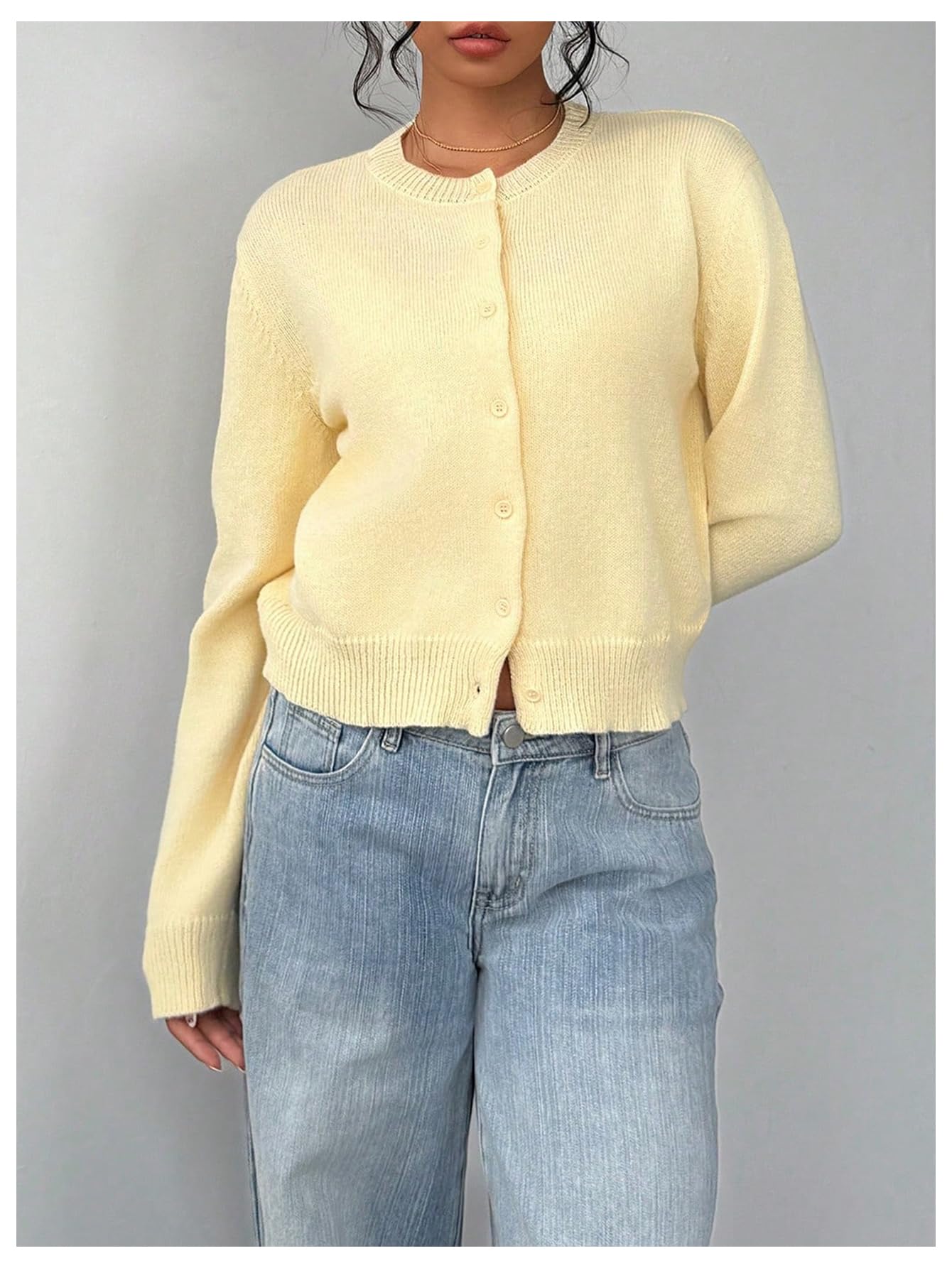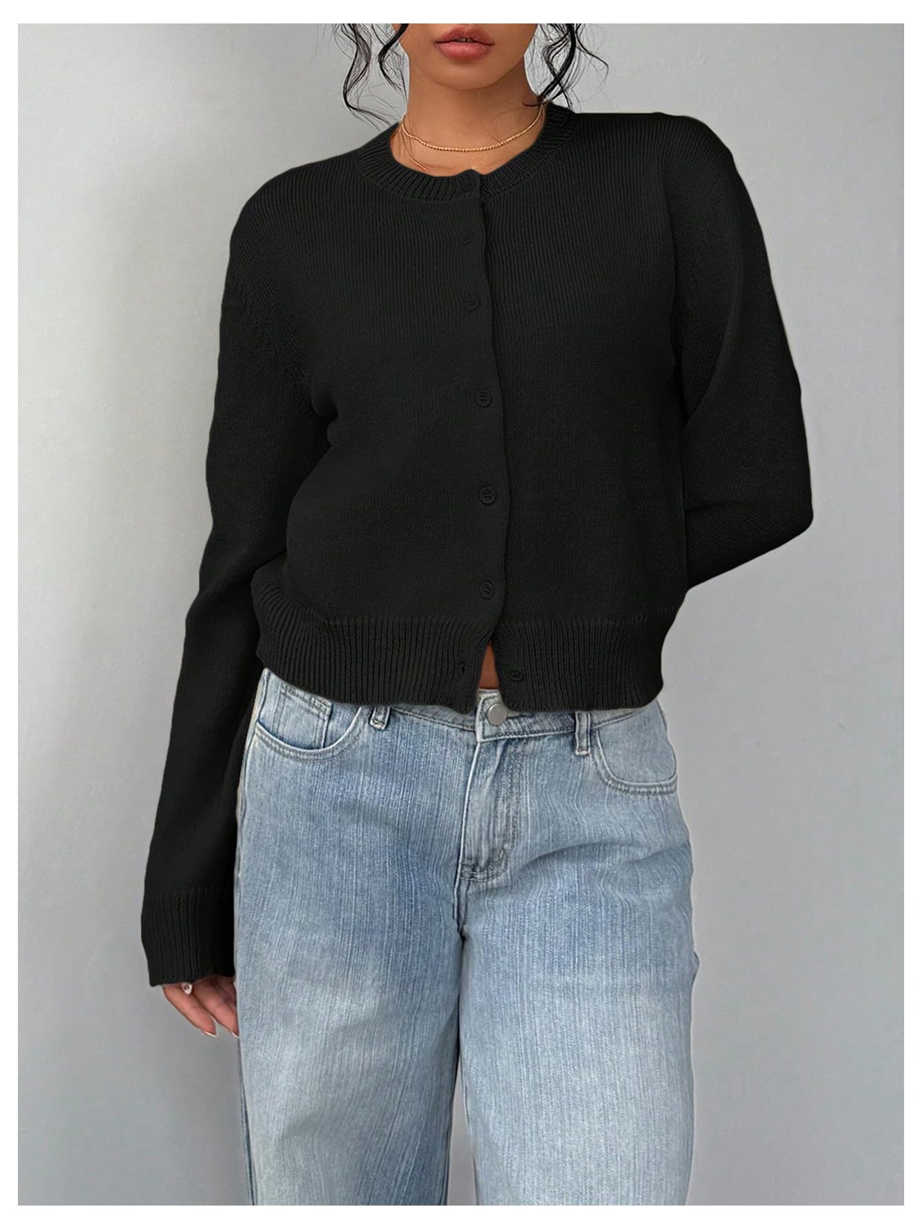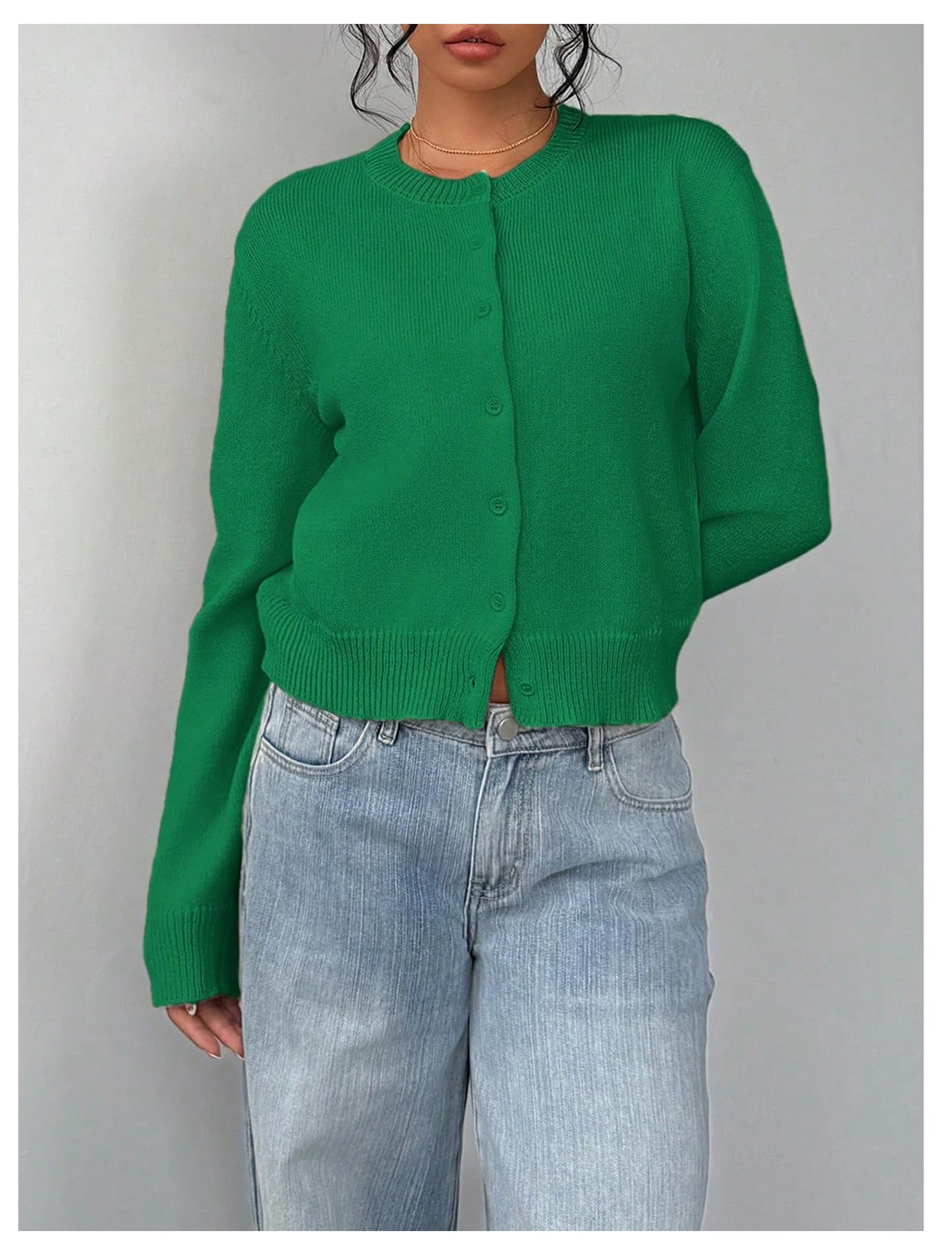 Design: Button front, round neck, drop shoulder, long sleeves, elegant and casual look