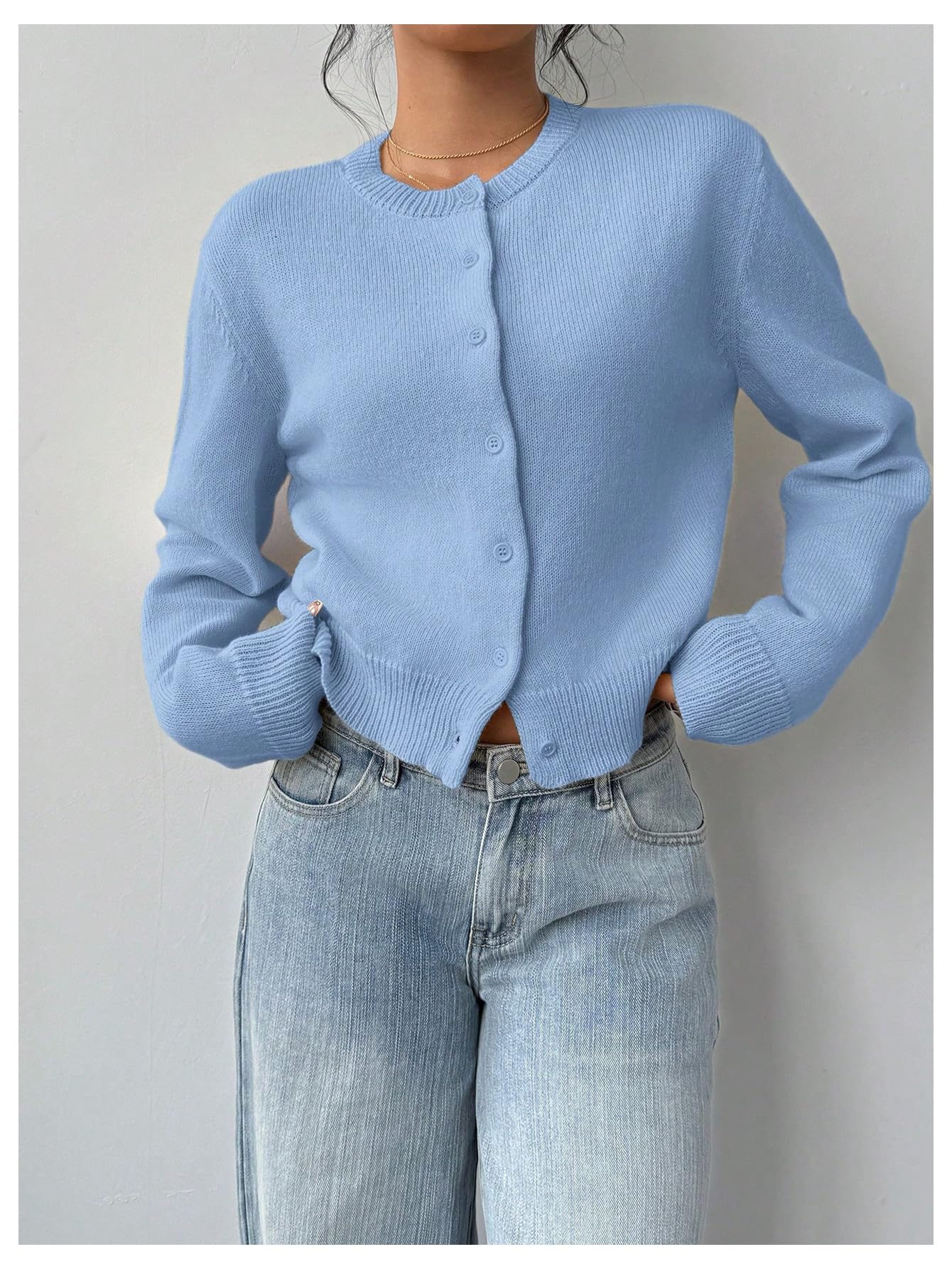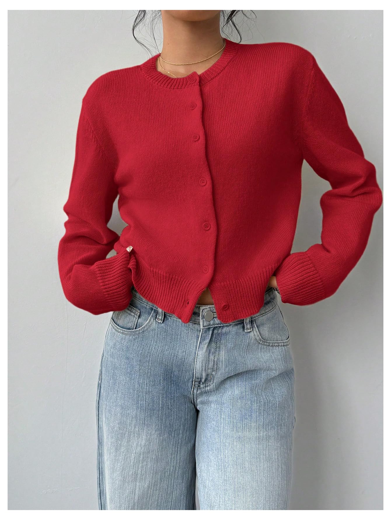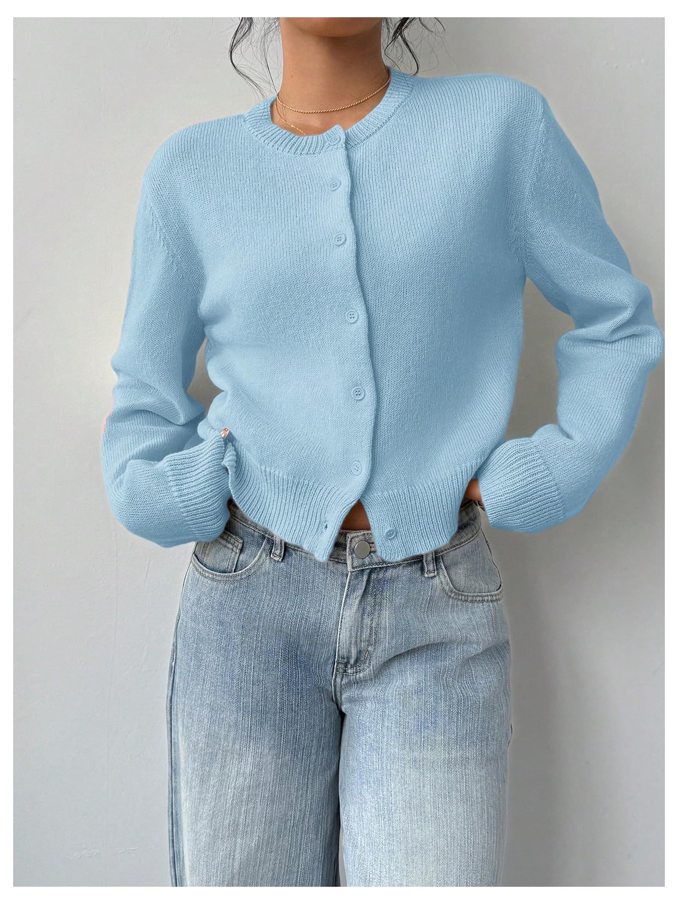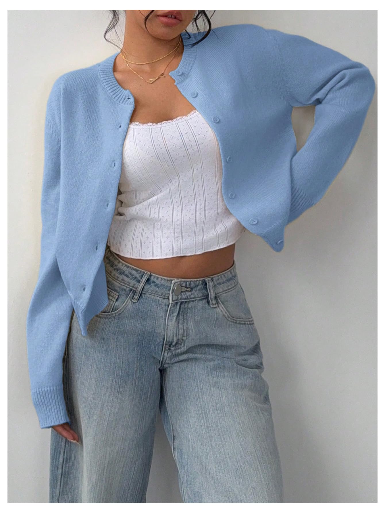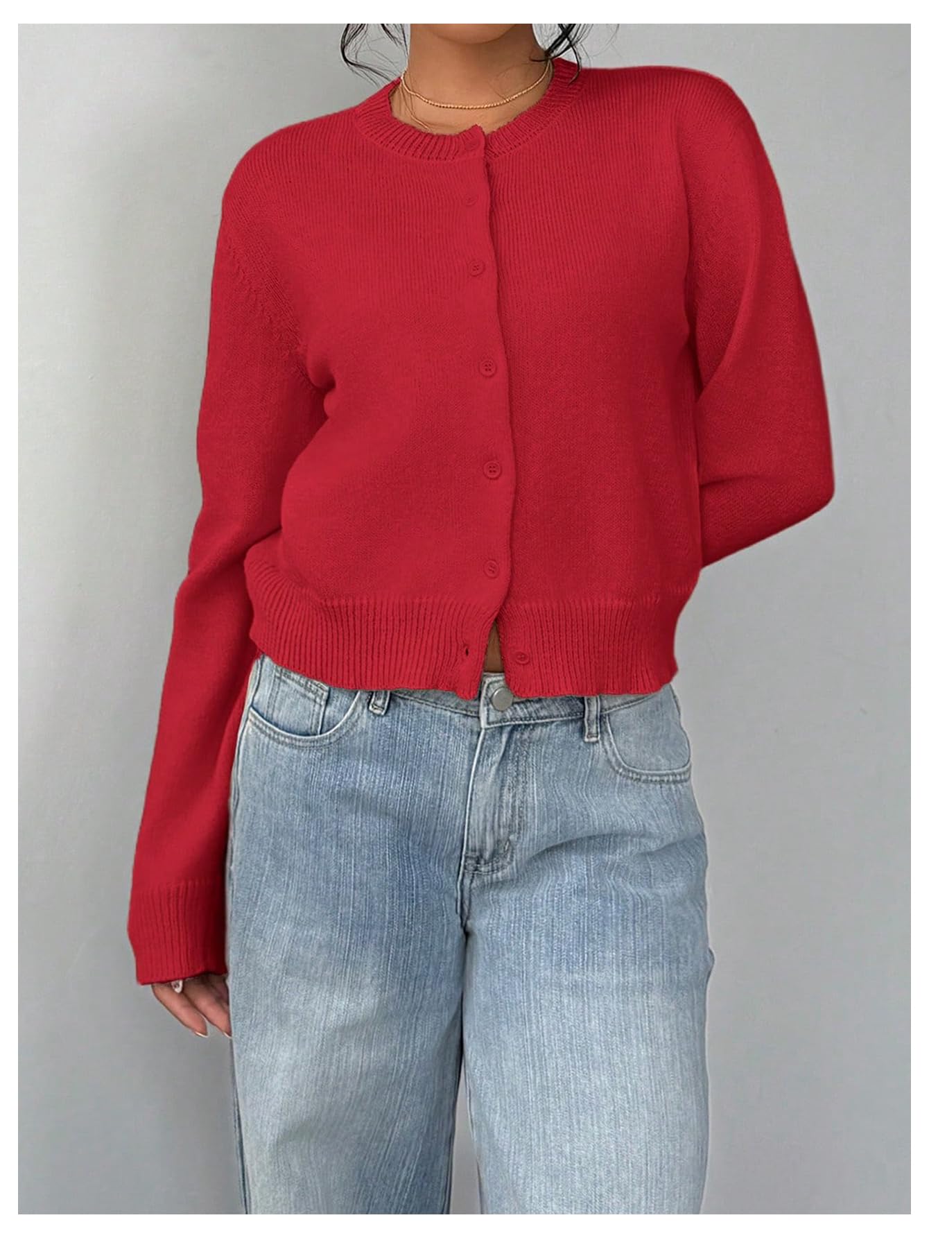 Design: Button front, round neck, drop shoulder, long sleeves, elegant and casual look