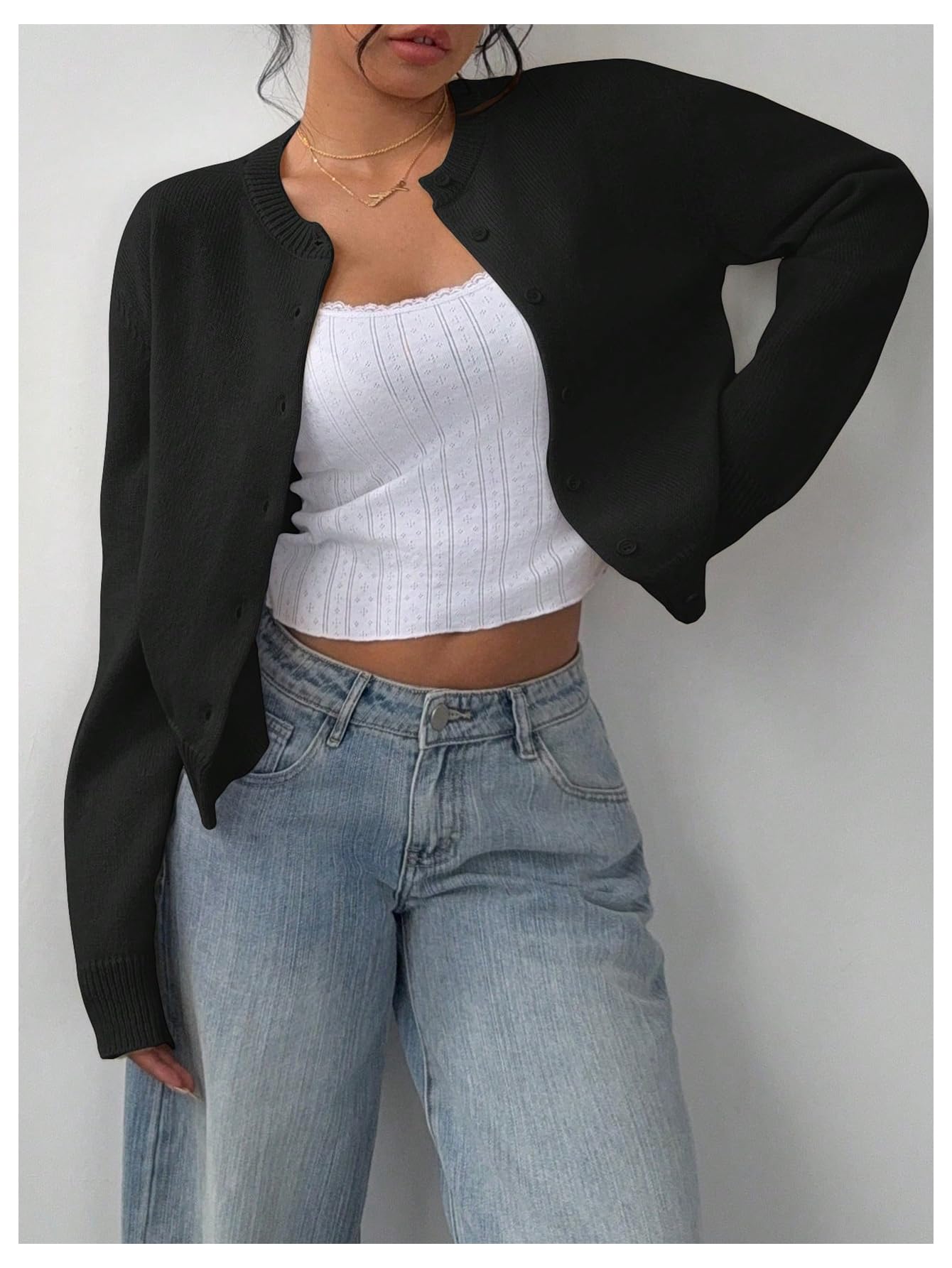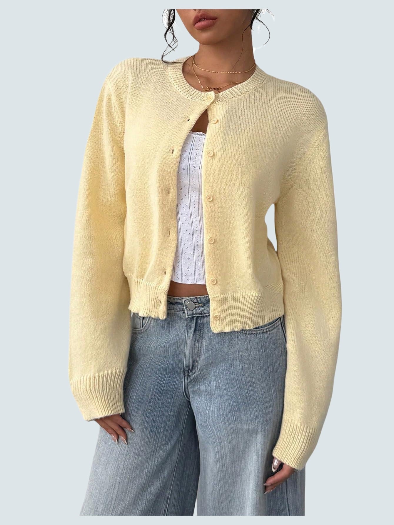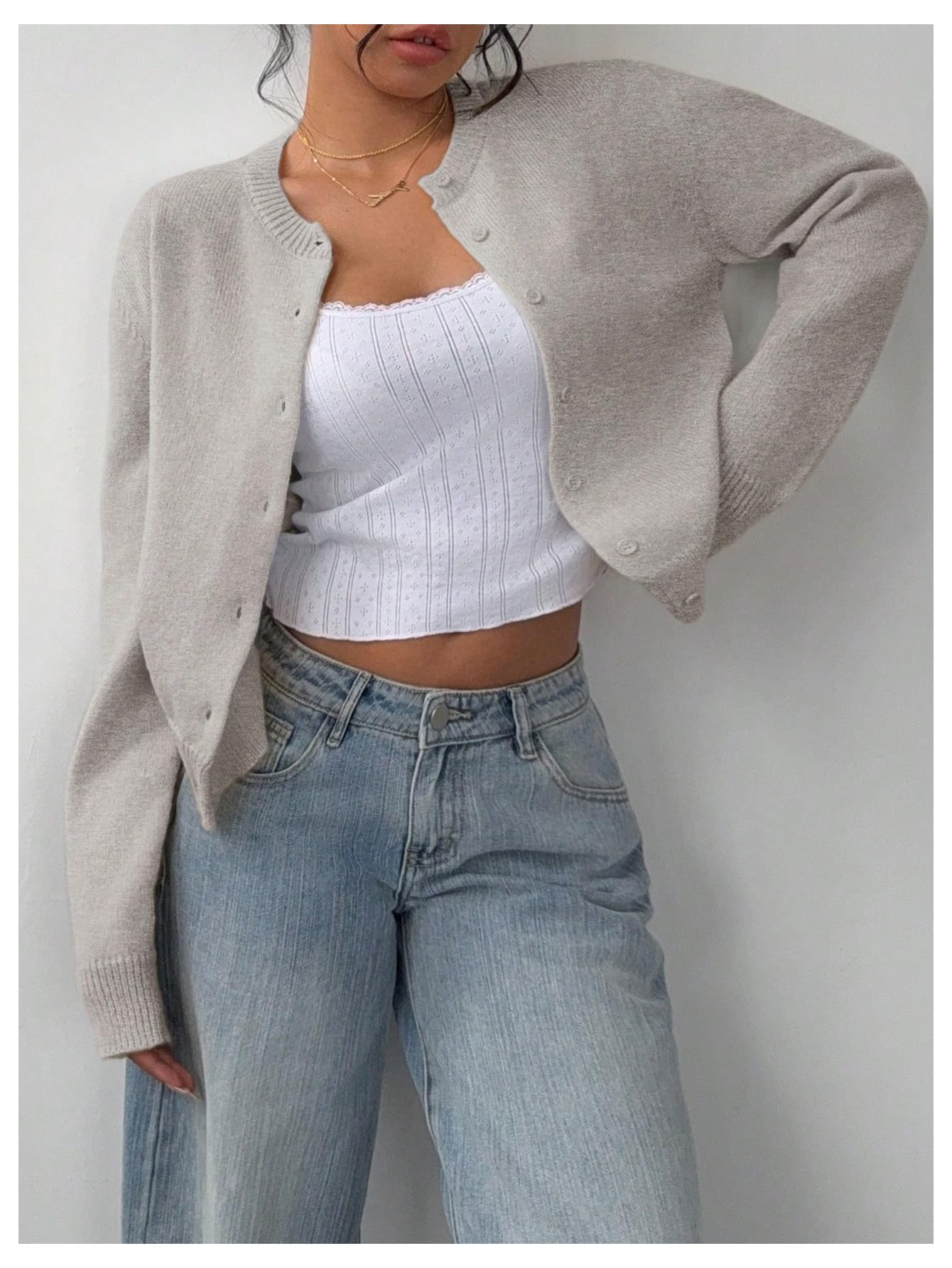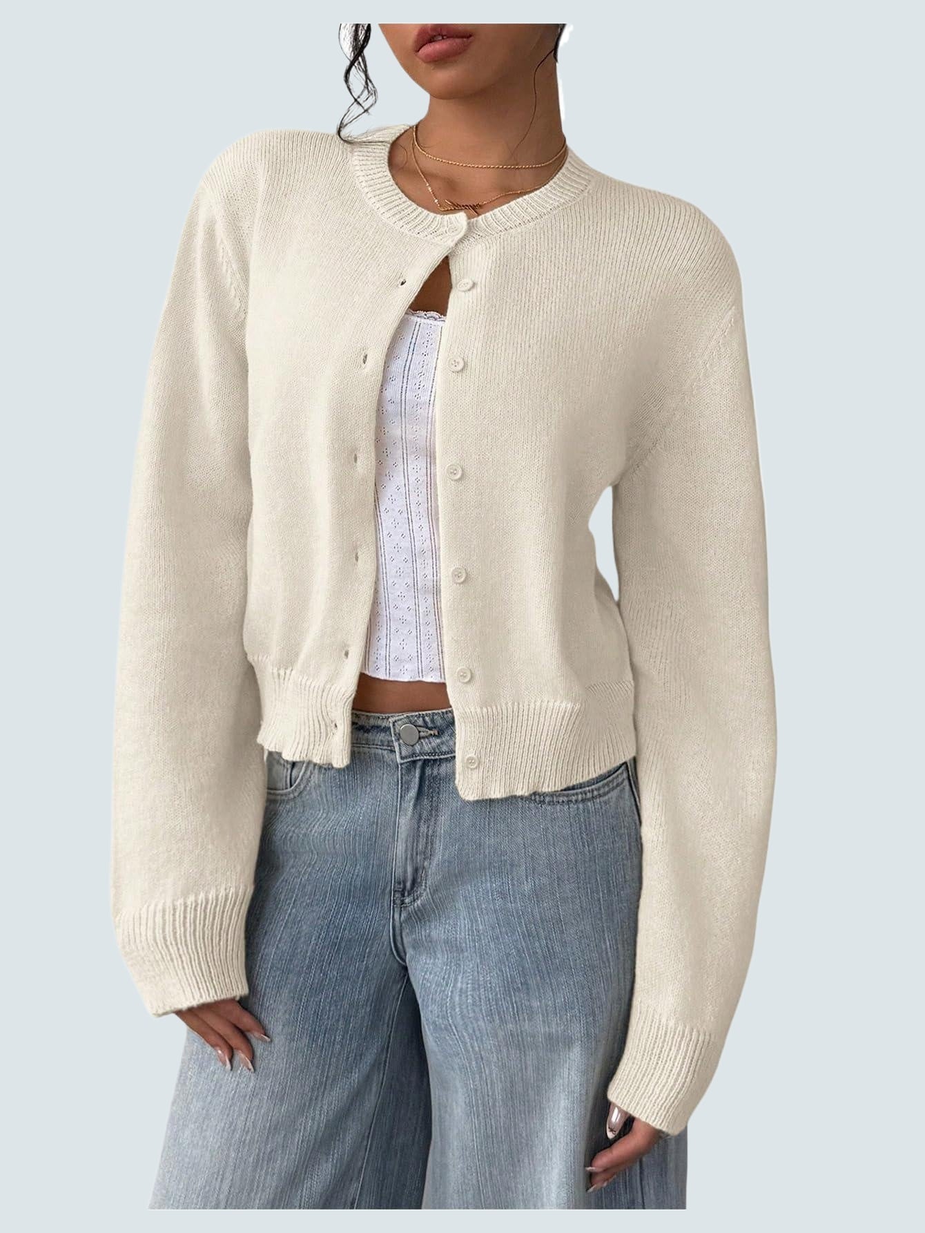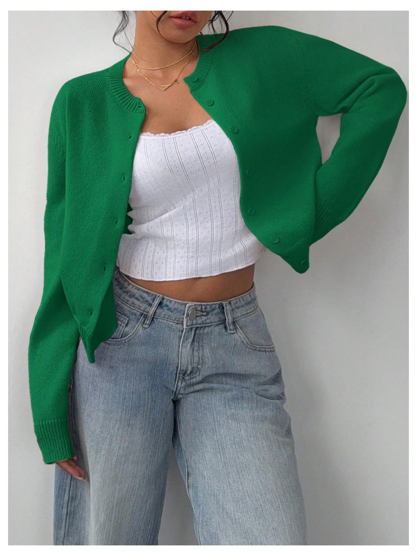 Design: Button front, round neck, drop shoulder, long sleeves, elegant and casual look