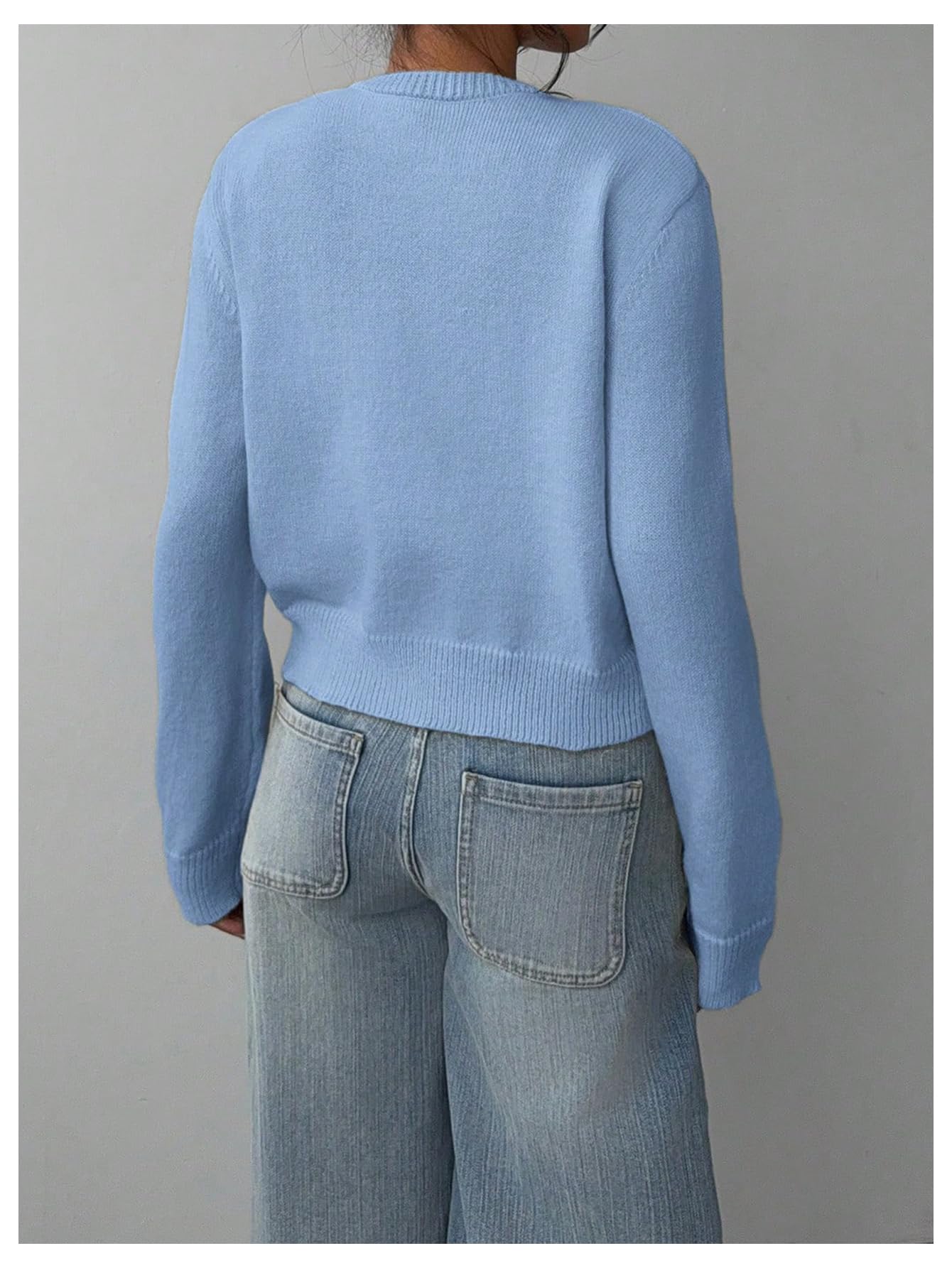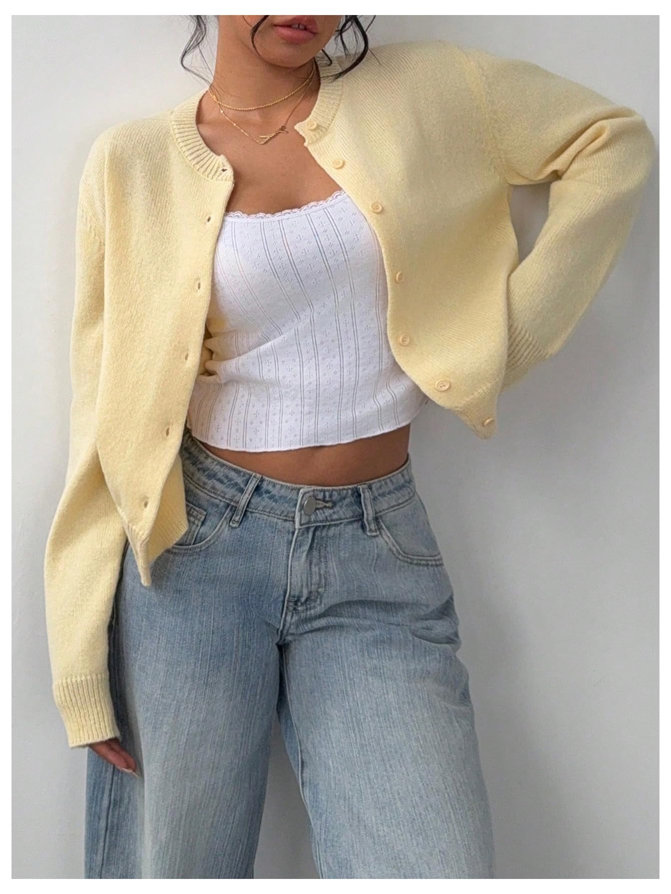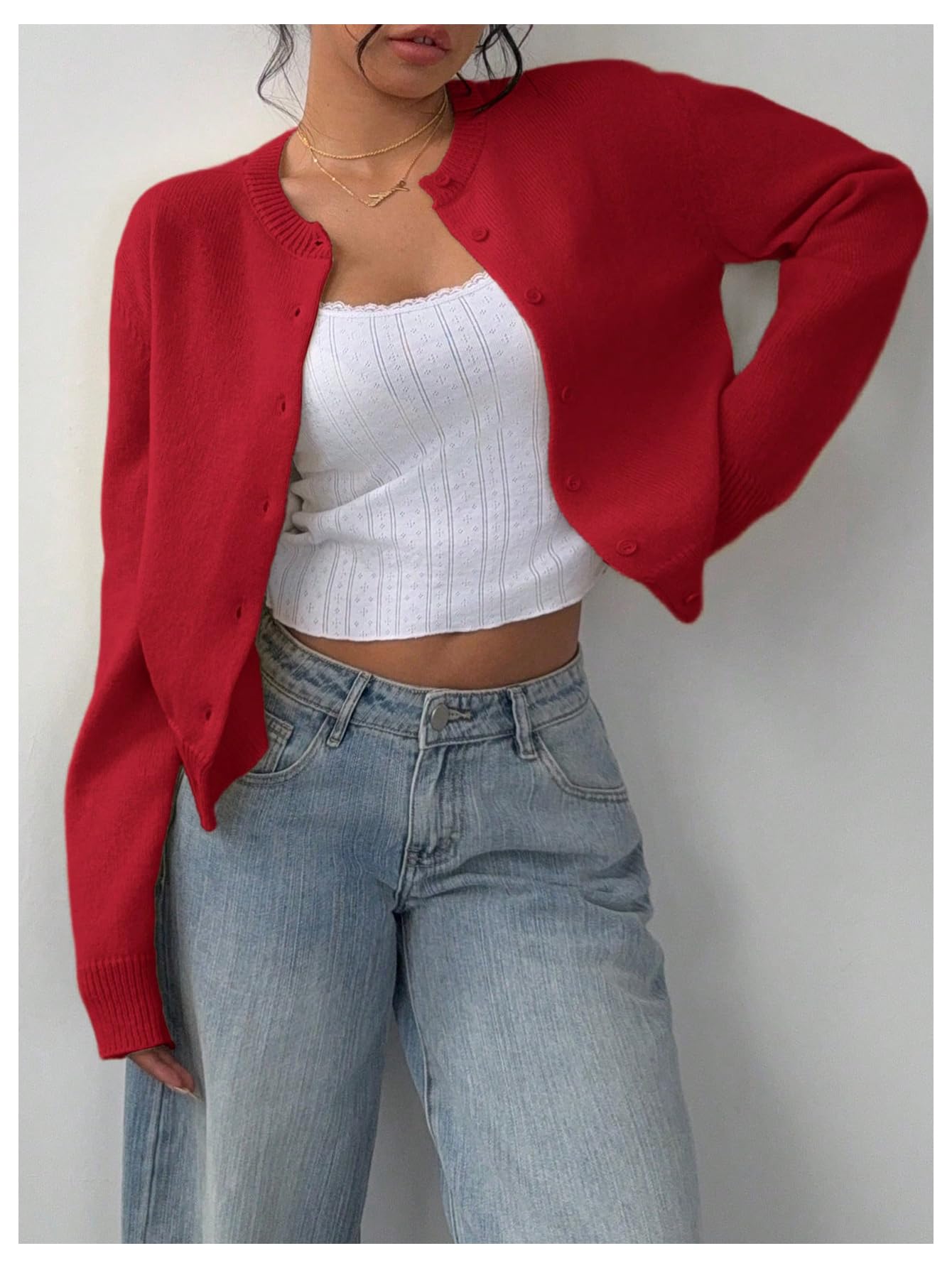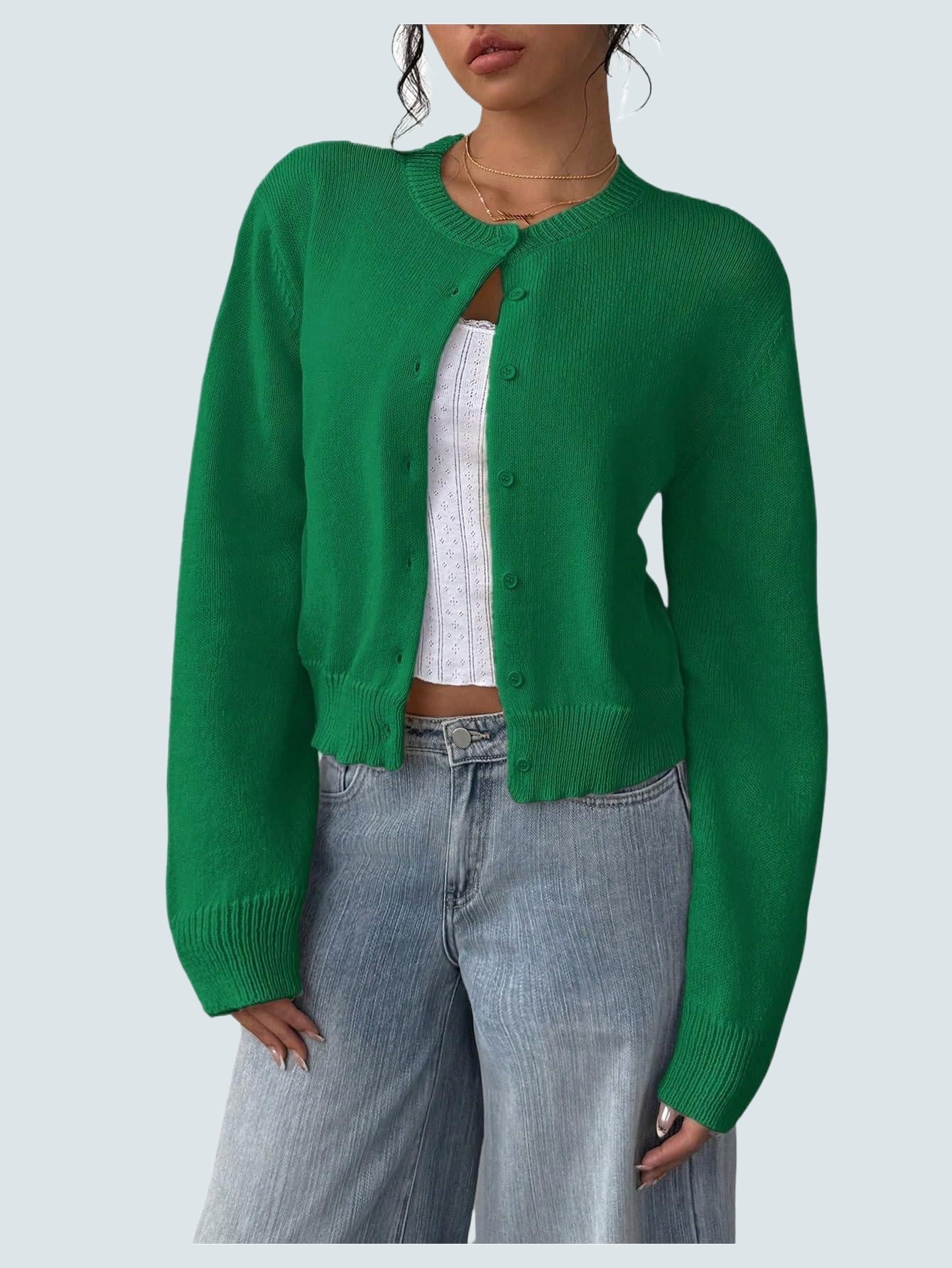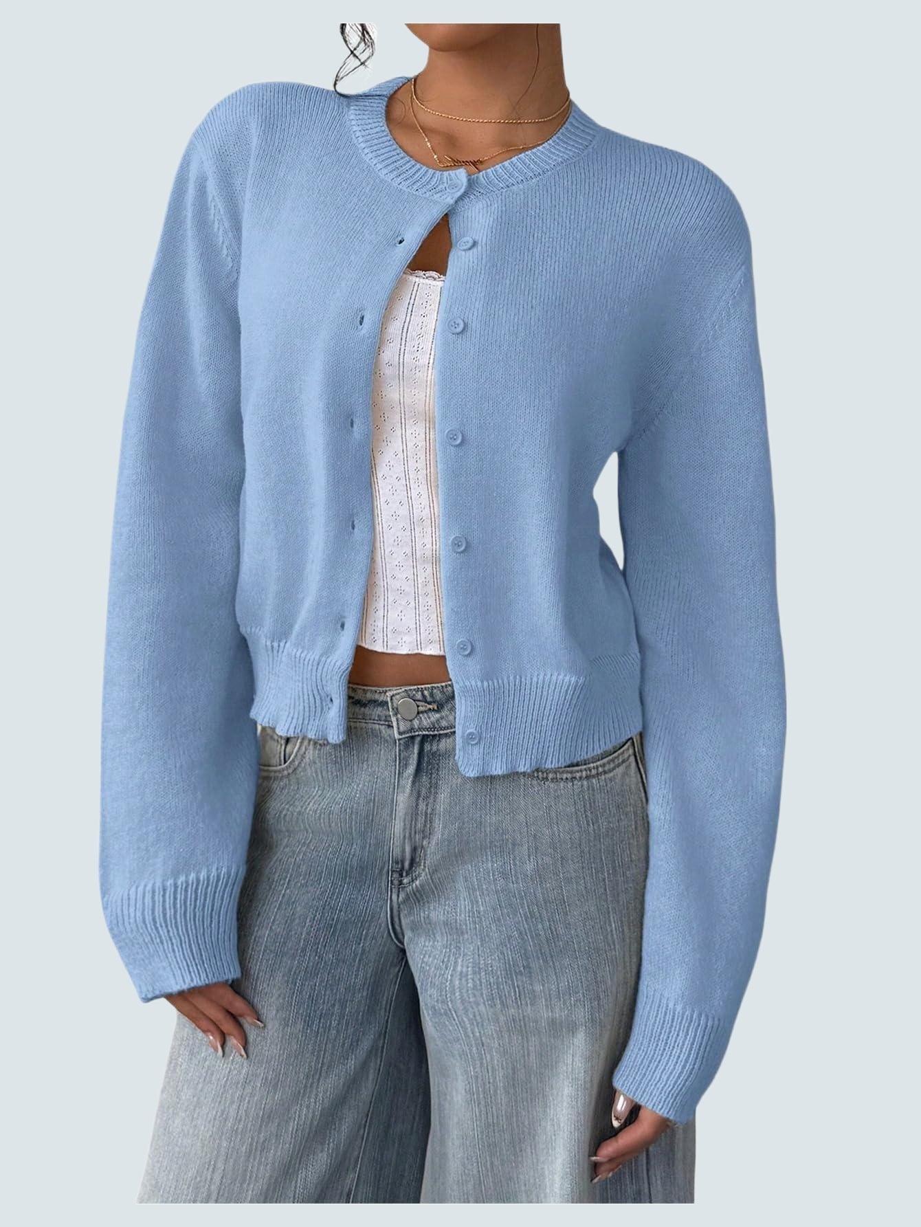 Design: Button front, round neck, drop shoulder, long sleeves, elegant and casual look